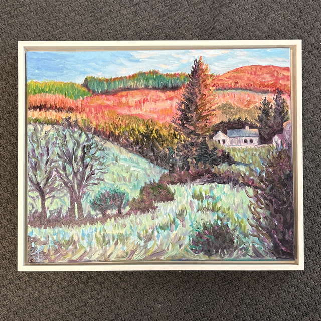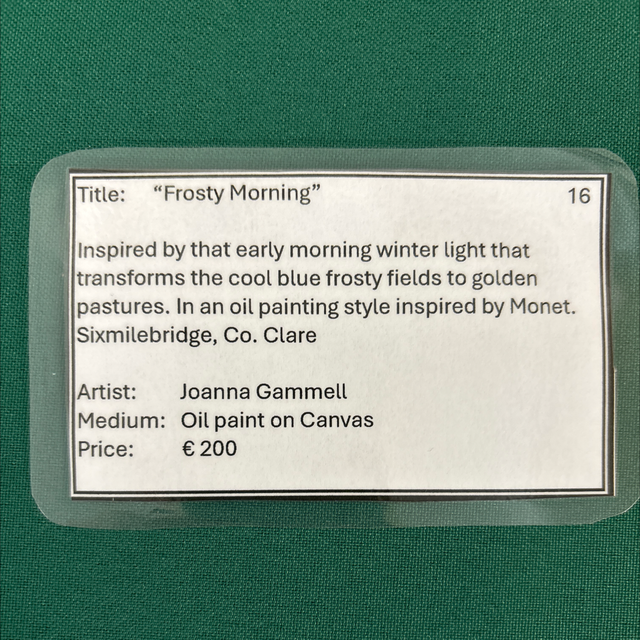 Original oil painting capturing the early morning light lifting the frosty fields near Sixmilebridge, Co.Clare