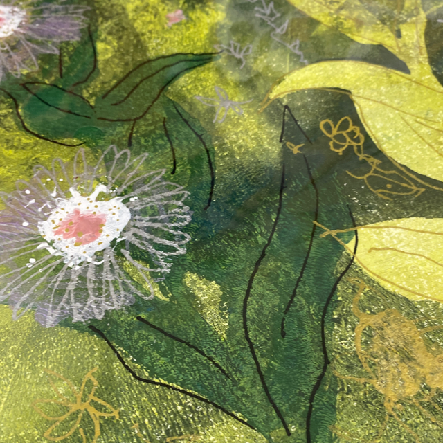 Mounted monotype acrylic print. Unique original artwork, one of a kind! A4 size, frame size 11x14inch.