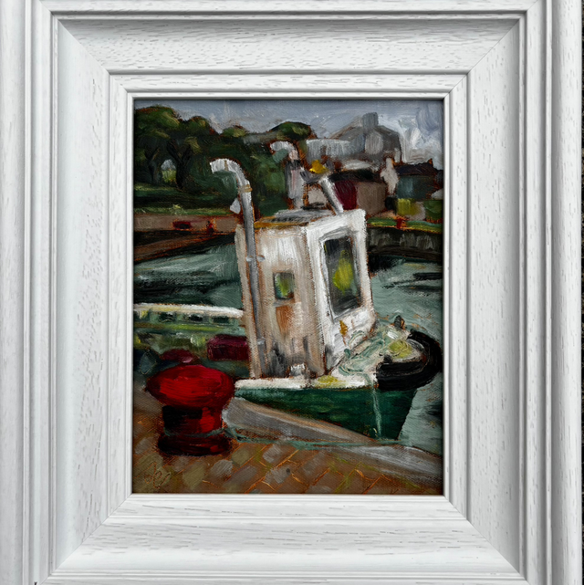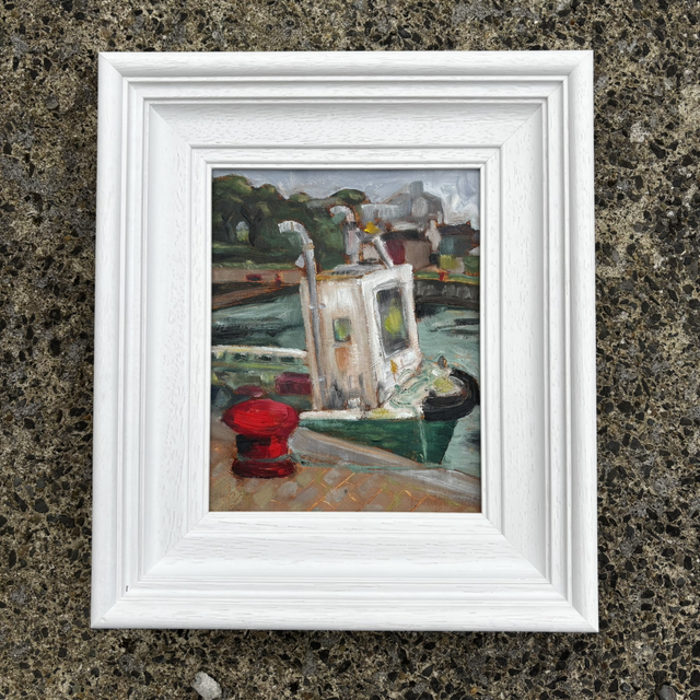 A charming seaside scene of an old boat moored in the harbour. Inspired by Kinvara in Co. Clare. Original oil painting by Irish artist Joanna Gammell. 8x10inch painting, framed size larger.