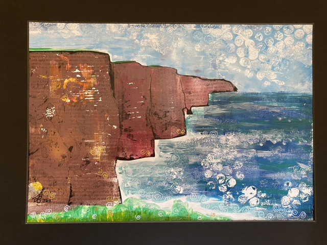 Cliffs of Moher, Co. Clare. Mounted monotype acrylic print. Unique original artwork, one of a kind! A4 size, frame size 11x14inch.